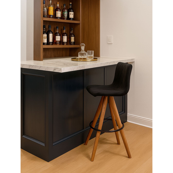 Banqueta Lucy Giratória em Madeira Maciça – Conforto, Estilo e Sofisticação para sua Cozinha ou Espaço Gourmet