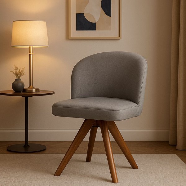 Cadeira Antonela com Base Giratória em Madeira Maciça – Elegância e Conforto em Movimento