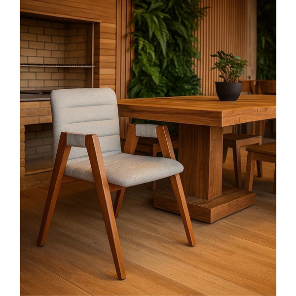 A Cadeira Júlia da Exclusiva foi desenvolvida para quem valoriza design contemporâneo, conforto e materiais nobres. Sua estrutura em madeira maciça oferece estabilidade e acabamento refinado, enquanto o estofado em linho alumínio traz suavidade visual e um toque agradável ao uso.
