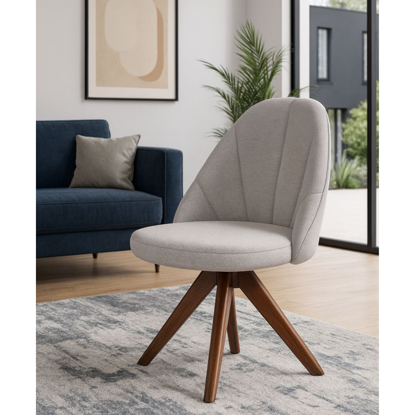 A Cadeira Malu Giratória da Exclusiva une conforto, versatilidade e um design marcante que valoriza qualquer ambiente. Com base giratória e pés em madeira de eucalipto tonalizados em castanho, ela traz funcionalidade com um toque de sofisticação natural.