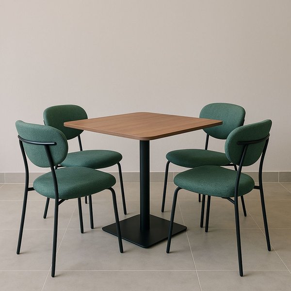 O Conjunto Mesa Comercial 80x80cm Cimamomo + 4 Cadeiras Iza Linho Lincoln Verde da Exclusiva é a solução ideal para quem busca unir design, conforto e durabilidade em um único mobiliário.