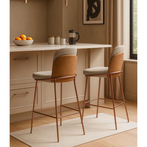 Além da estética, cada banqueta oferece assento estofado e encosto anatômico, garantindo conforto prolongado no uso diário.