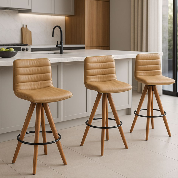 O Kit com 3 Banquetas Lucy da Exclusiva é ideal para compor ambientes modernos com elegância, praticidade e personalidade. Com base giratória e estrutura em madeira maciça na cor castanho, cada banqueta entrega durabilidade e mobilidade no uso diário.