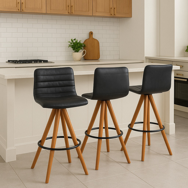 O Kit com 3 Banquetas Lucy da Exclusiva é ideal para compor ambientes modernos com elegância, praticidade e personalidade. Com base giratória e estrutura em madeira maciça na cor castanho, cada banqueta entrega durabilidade e mobilidade no uso diário.