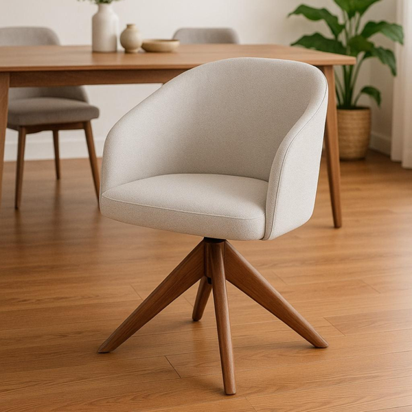 Poltrona Zara com Base Giratória em Madeira Maciça – Conforto e Estilo em Equilíbrio Perfeito