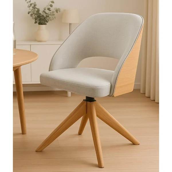 Sua base giratória em madeira maciça proporciona estabilidade, durabilidade e liberdade de movimento, enquanto o assento amplo e o encosto curvado oferecem ergonomia e bem-estar mesmo por longos períodos.