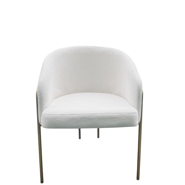 Poltrona Maitê Estofada Bouclé Off White com Base em Aço Dourado