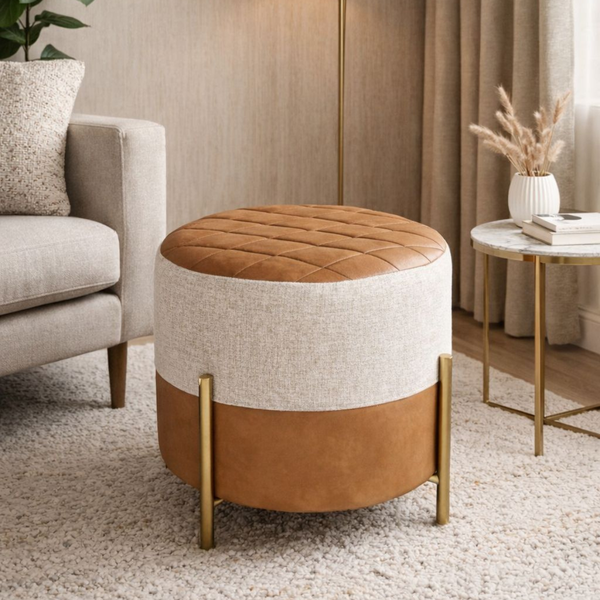 Transforme a atmosfera do seu ambiente com o Puff Redondo Exclusiva. Uma peça versátil, elegante e funcional, que une materiais sofisticados a um design contemporâneo.